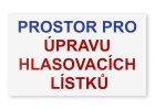PVC cedule s červenomodrým textem "Prostor pro úpravu hlasovacích lístků". Cedule je dodávaná v rozměru 50 x 30 cm a má pomoci voličům s orientací po příchodu do volební...
